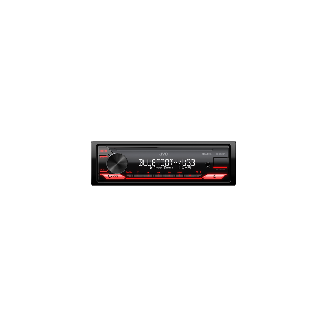 - Entrées frontales USB & Auxiliaire éclairés, protégées par couvercle coulissant anti-poussière