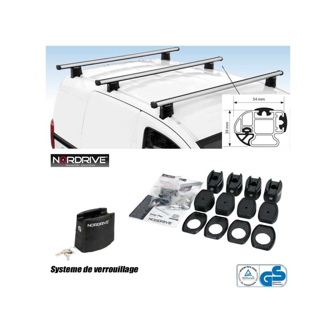BARRE DE TOIT + FIXATION VW CADDY  KIT 3 BARRES