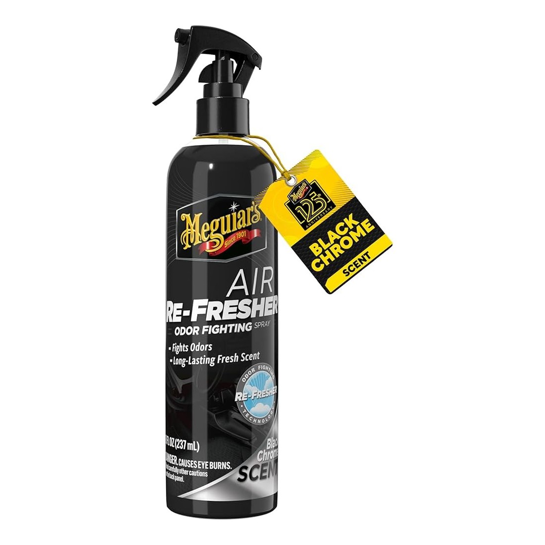 POUR UNE SENSATION DE FRAICHEUR ET DE PROPRE DANS VOTRE HABITACLE : Votre intérieur ne sent pas très bon ? Le spray destructeur d’odeurs Meguiar’s® est parfait pour chasser les mauvaises odeurs et les remplacer par un agréable parfum. Appuyez simplement sur la gâchette et vaporisez sur la surface textile concernée DÉSODORISANT PARFUM « BLACK CHROME » : Combat les odeurs tout en laissant un parfum rafraîchissant « black chrome » subtil et durable UN EFFET DURABLE EN SPRAY : Cette formule exclusive est facile à utiliser et offre une action longue durée ! Il suffit de vaporiser le tapis ou la surface textile concernée sans excès et de laisser le produit sécher. Ce spray anti-odeurs laissera un subtil parfum durable SPRAY ANTI-ODEURS : Ce spray haut de gamme offre une formule qui élimine parfaitement les odeurs dans les intérieurs de voitures. Il est également un excellent choix pour tout autre habitacle, comme ceux des camions, des SUV, des véhicules de loisirs, des bateaux, etc. L’intérieur de votre voiture dégage peut-être des odeurs indésirables ou n’est tout simplement pas très propre. Peu importe, nous avons la solution qui convient avec le spray anti-odeurs Meguiar’s® Parfum. Ce spray désodorisant premium pour voiture élimine instantanément les odeurs tout en laissant un parfum durable et rafraîchissant. Pratique et facile à utiliser. Vaporisez le produit sur le tapis ou le textile concerné et laissez-le sécher. Rapide et sans effort, il vous suffit de pulvériser. La technologie avancée "Air Re-Fresher" agit sur les odeurs en laissant une agréable impression de fraîcheur dans votre voiture.